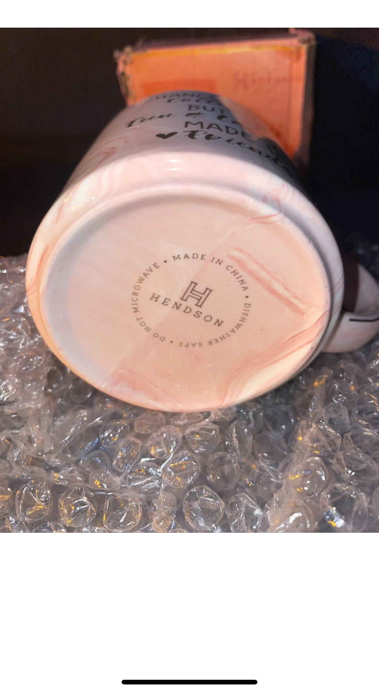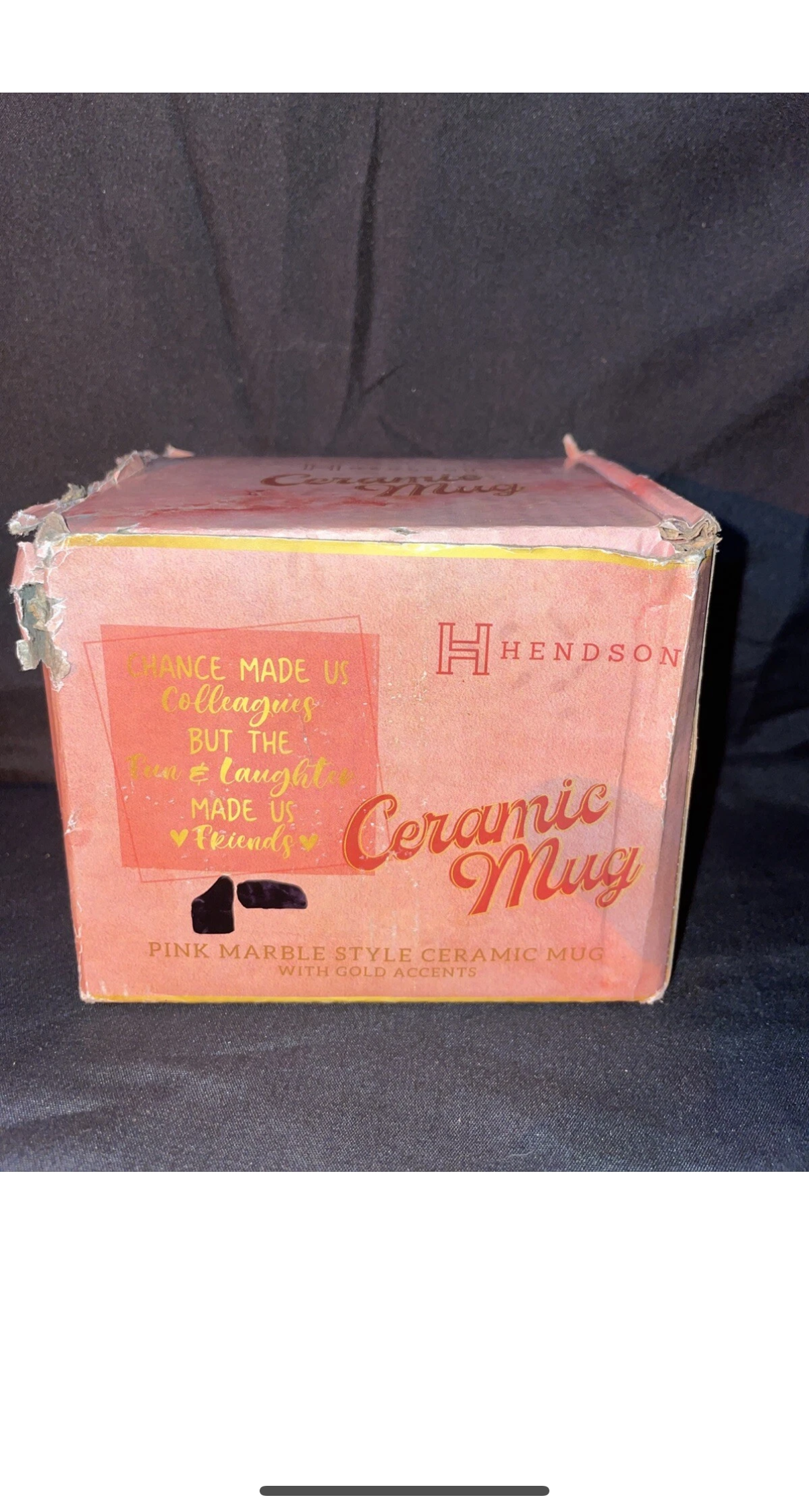 B-Day Mug For Co-Worker-Henderson Pink Marble Ceramic Mug W/Gold Accents